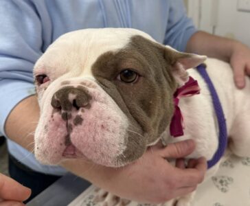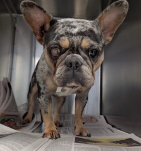 Misty arrived just this past weekend. This one-year-old French Bulldog is nervous but incredibly gentle. She is facing multiple medical needs, including the removal of her right eye like Ducky, a spay, airway surgery to help her breathe more easily, and treatment for a severe ear infection that may require additional care. Her journey is just beginning, but she is surrounded by a team committed to giving her comfort, healing, and hope.